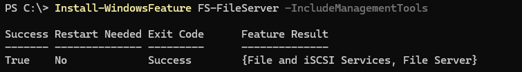 Install-WindowsFeature FS-FileServer -IncludeManagementTools